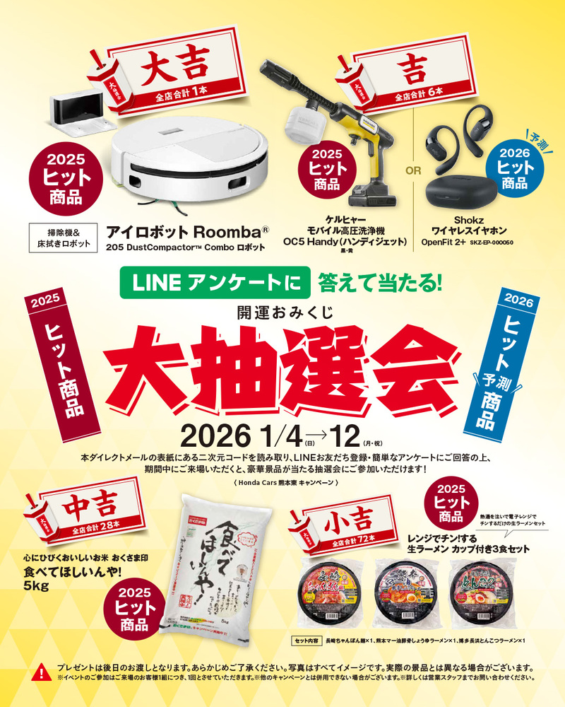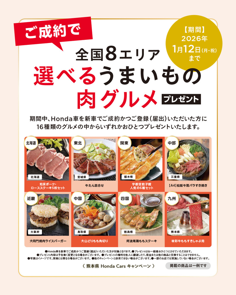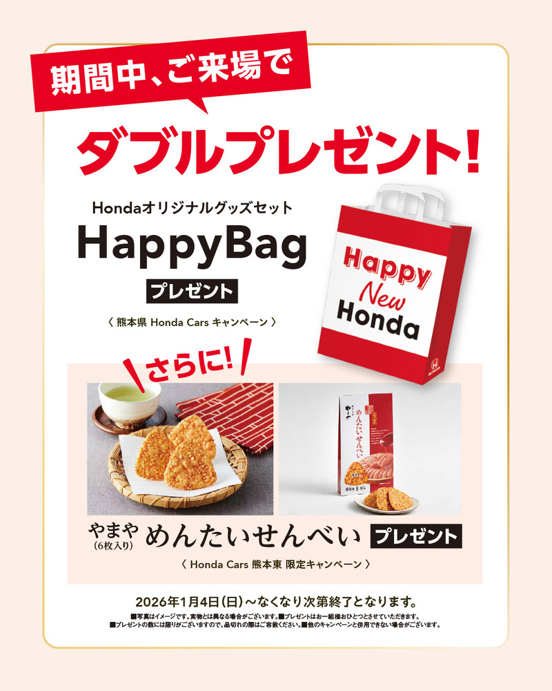 当社では今年最初の催しといたしまして、1月4日(日)から「Happy New Honda 」を開催いたします。