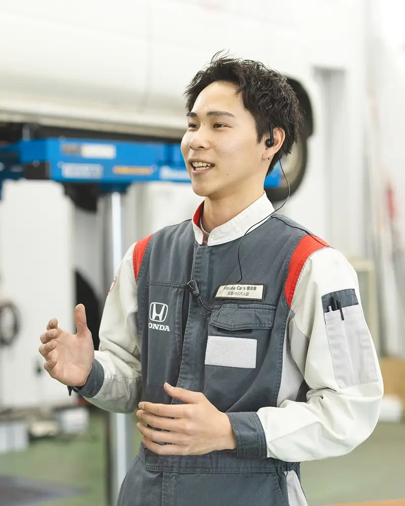 会社説明会に参加したときに、仕事内容や会社の考え方を聞いて、「ここなら整備士としてしっかり成長できそうだな」と感じたのがきっかけです。基礎から学べる環境が整っていることや、若手でも少しずつ仕事を任せてもらえる点に魅力を感じました。安心して経験を積みながら、自分の力を伸ばしていける会社だと思い、入社を決めました。